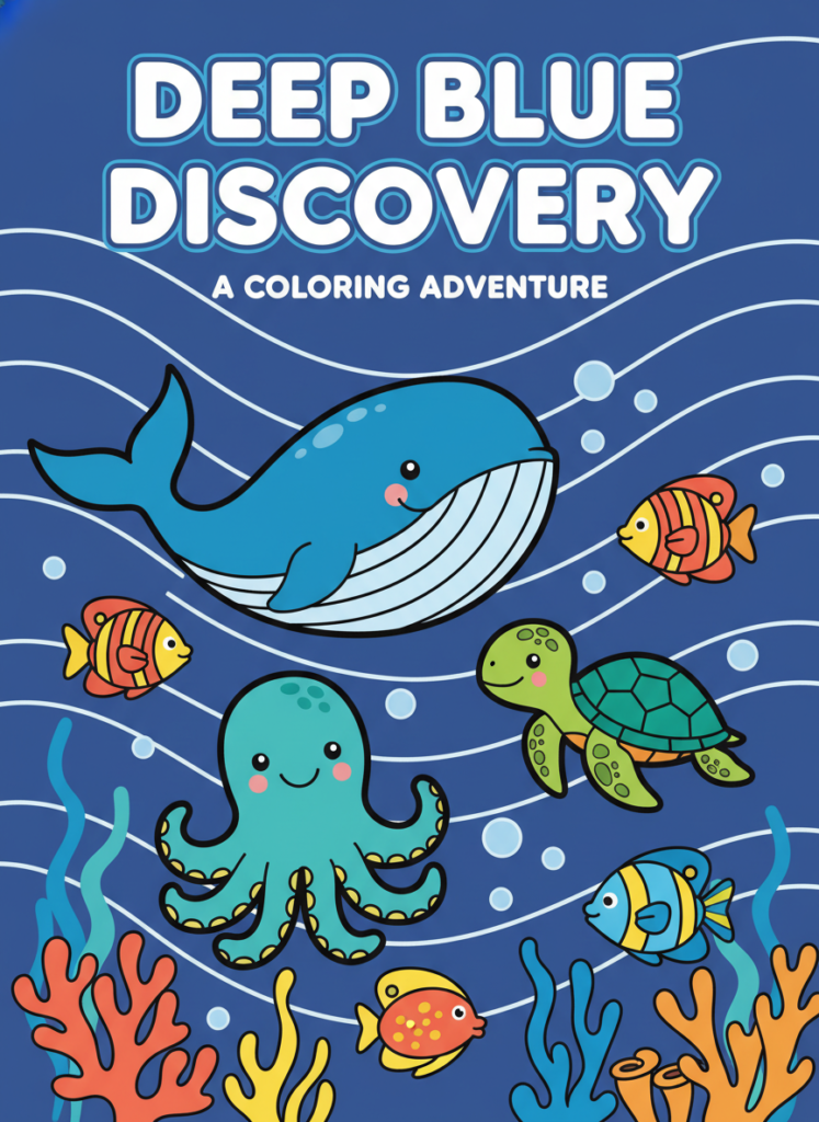 Deep Blue Discovery: Ocean Animals Coloring Book for Kids Ages 3-8